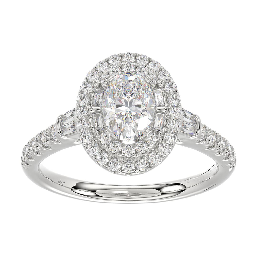 LADIES BIRDAL RING 1.50CT ROUND/BAGUETTE/OVAL DIAMOND 14K WHITE GOLD (SI QUALITY) (CENTER STONE 0.75CT OVAL DIAMOND)