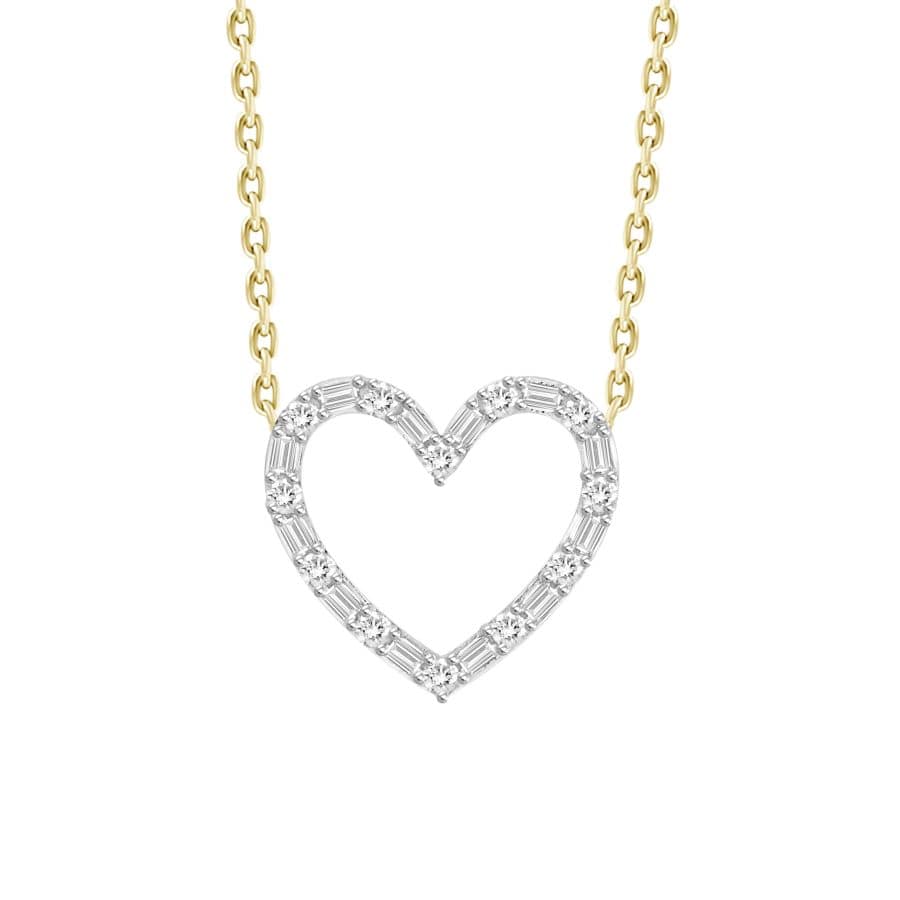 LADIES NECKLACE 0.20CT ROUND/BAGUETTE DIAMOND 10K YELLOW GOLD