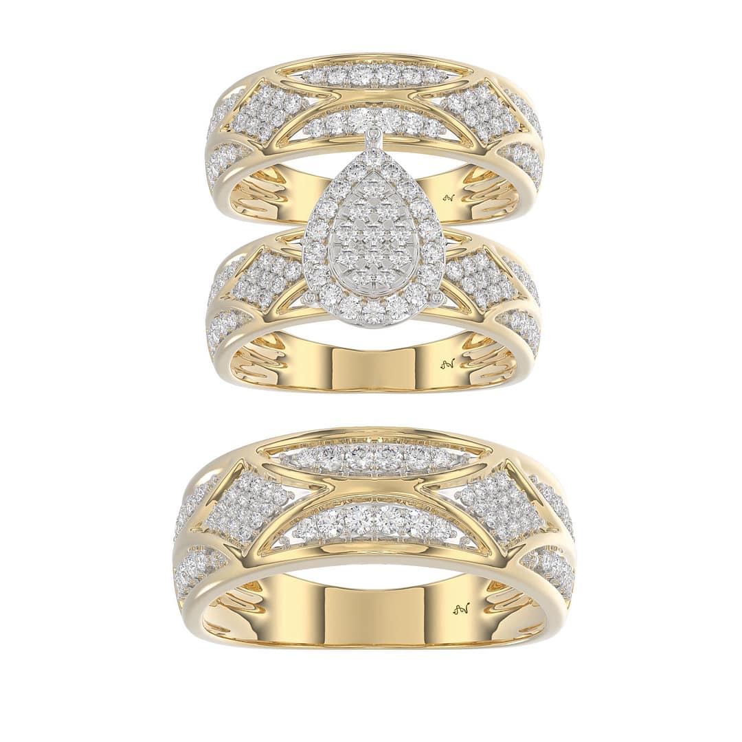 LADIES TRIO SET 1.33CT ROUND DIAMOND 10K YELLOW GOLD