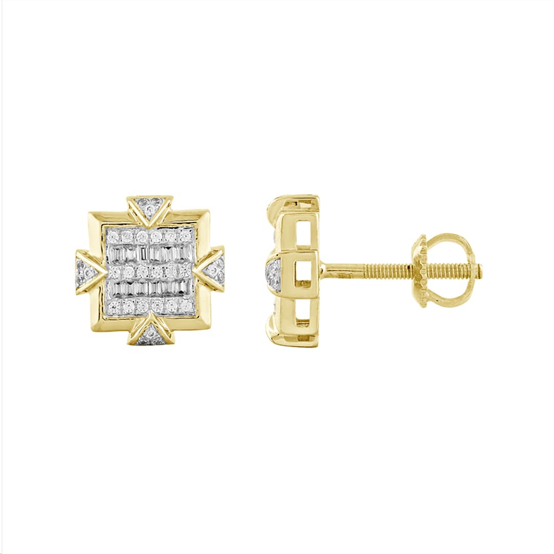 MEN’S EARRINGS 0.25CT ROUND/BAGUETTE DIAMOND 10K YELLOW GOLD