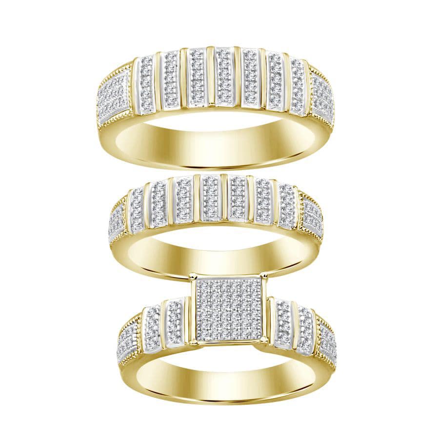 UNISEX TRIOS SET 0.50CT ROUND DIAMOND 10K YELLOW GOLD