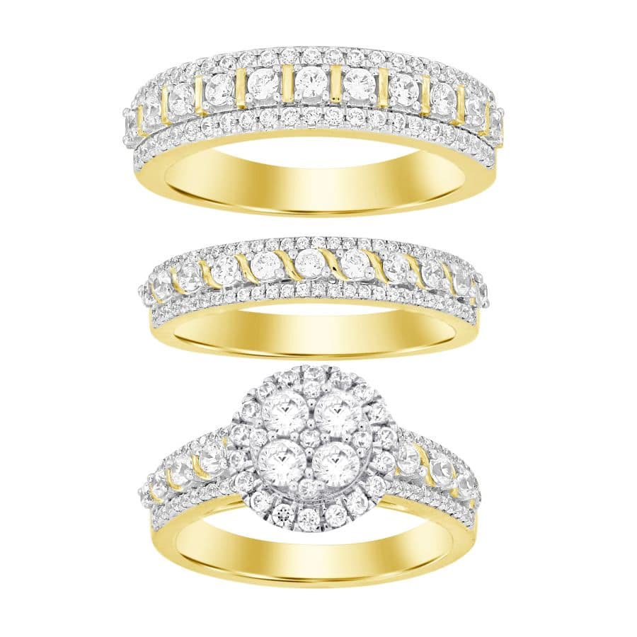 UNISEX TRIOS SET 2.00CT ROUND DIAMOND 10K YELLOW GOLD